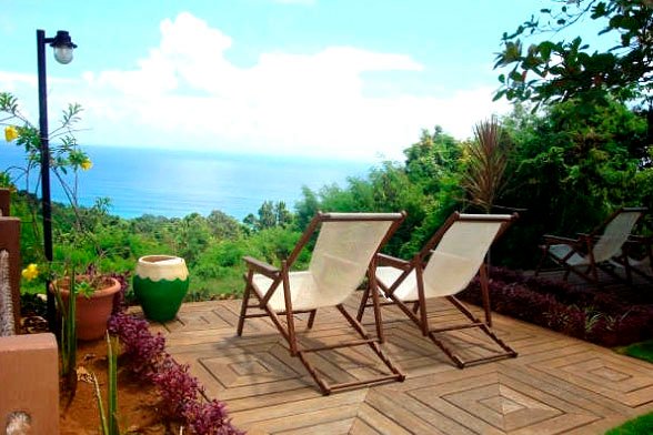 Agréable vue mer pour ces petits chalets jouissant d'une mini terrasse. Vous trouverez également une petite piscine et dans les chambres, de grands lits doubles, l'air conditionné, la TV et une salle d'eau WC privative